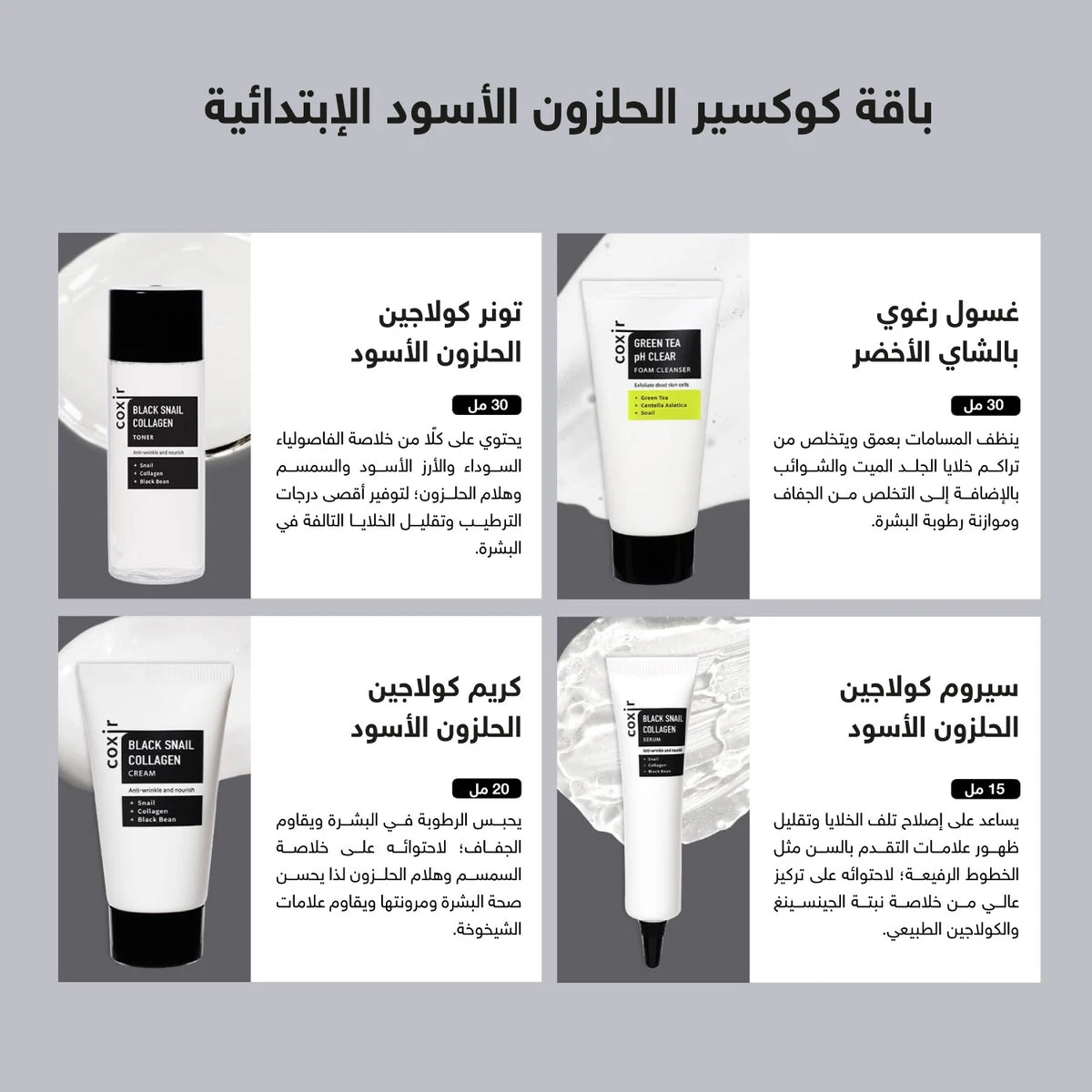 ⦿ Formulated with snail mucin, black bean, and green tea extract