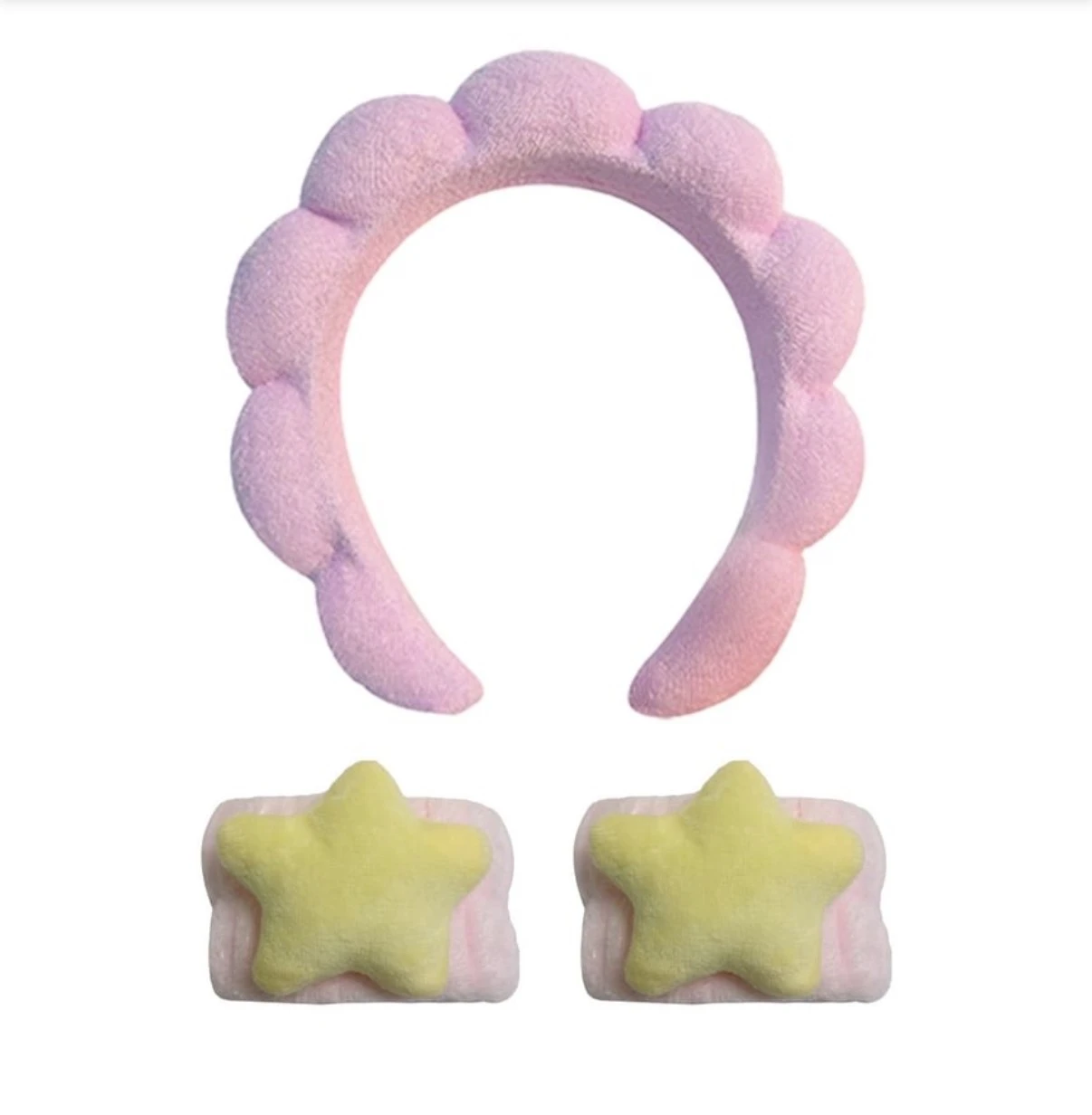 مجموعة من 3 قطع: ربطة رأس سادة لغسل الوجه + سوار معصم لطيف