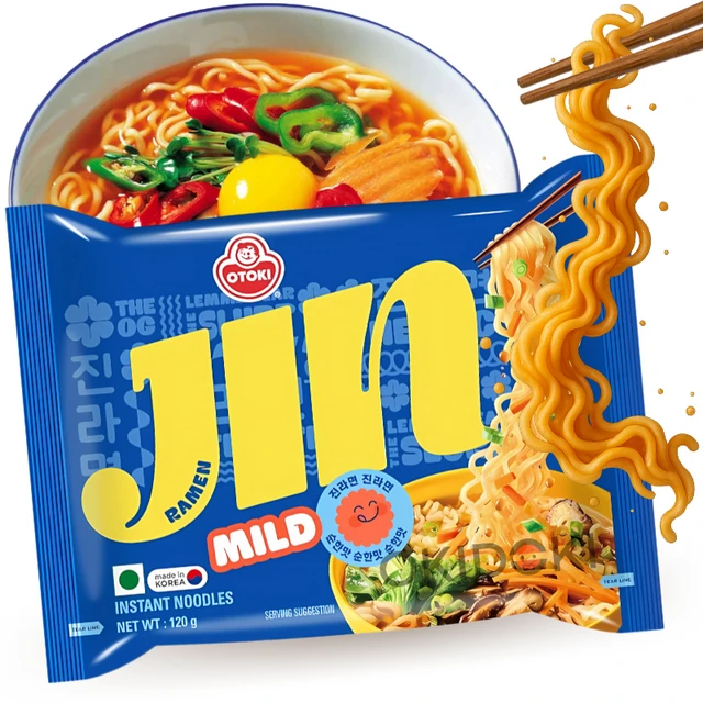 Ottogi Jin Ramen (Mild) is a popular Korean instant noodle brand, known for its chewy, soft noodles and a savory, mild beef bone broth.