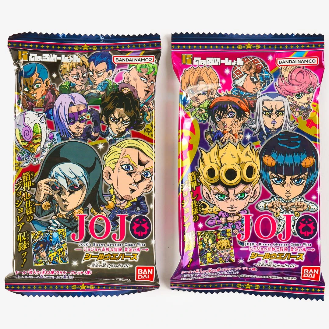 استمتع برقاقة ويفر لذيذة محشوة بكريمة الفانيليا، واجمع واحدة من 32 ملصقًا من سلسلة "الرياح الذهبية" من مغامرات جوجو العجيبة! هذا هو الإصدار الخامس من السلسلة، ويضم رسومات لشخصيات مثل جيورنو جيوفانا وبرونو بوتشيلاتي. ابحث عن الملصقات النادرة والمختومة برقائق معدنية!