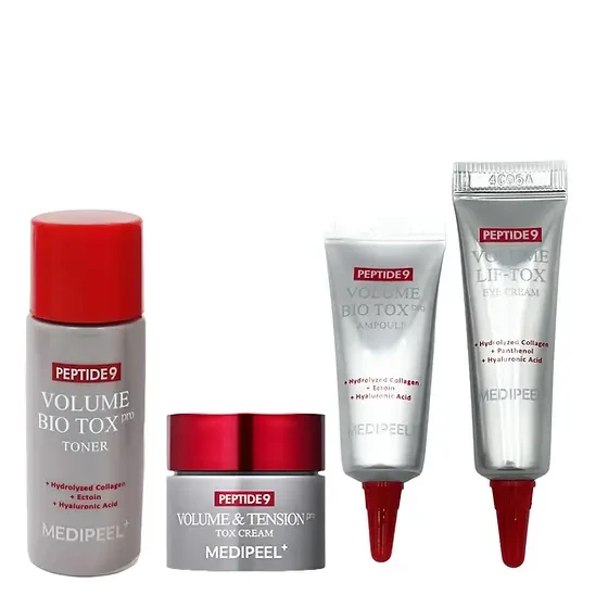 The MEDI-PEEL Peptide 9 Volume Bio Tox Trial Kit is an intensive treatment set crafted to restore firmness, boost elasticityand reignite skin radiance. Featuring a powerhouse blend of 9 peptides, astaxanthin and hyaluronic acid, this kit works on multiple layers to rejuvenate and revitalise your complexion.