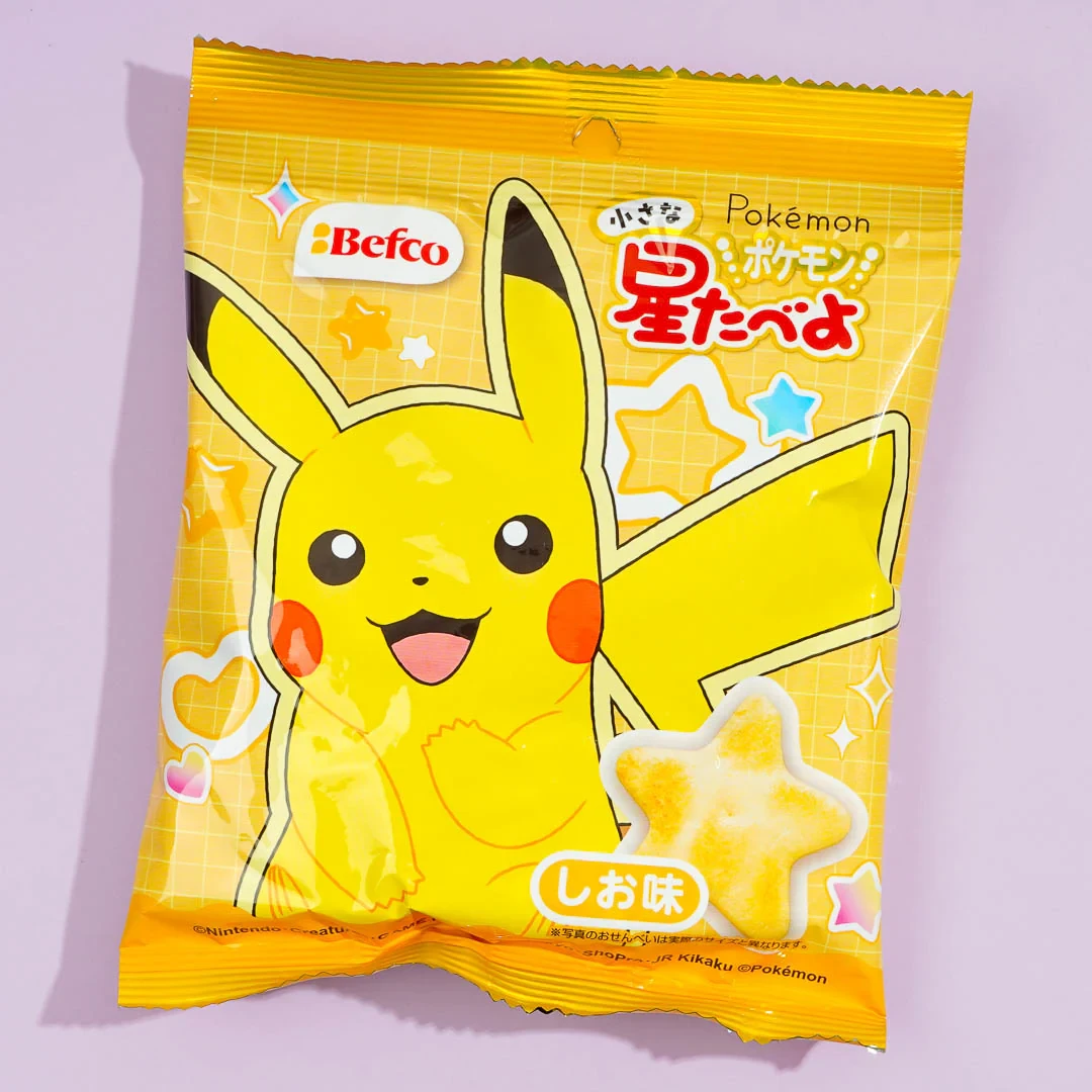 استمتع بهذه المقرمشات المقرمشة على شكل نجمة من الأرز بينما تستمتع بمشاهدة شخصيات بوكيمون المفضلة لديك! تتميز هذه المقرمشات الصغيرة بنكهة ملح خفيفة.
