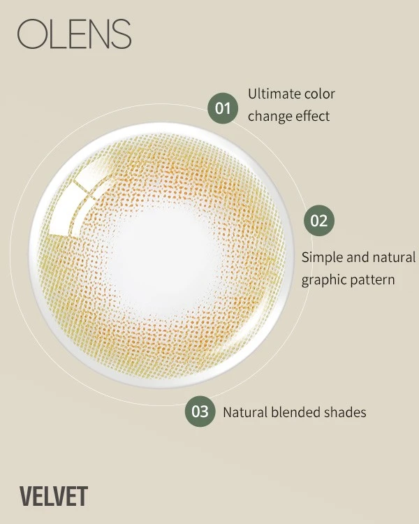 اللون الأخضر الذهبي سيجعلكِ مميزة وجذابة. أما تدرج الألوان داخل العدسات اللاصقة فتمنحكِ إطلالة أكثر فخامة، ولكن دون مبالغة.